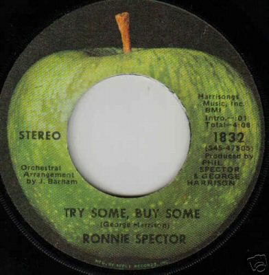 In 1971 Ronnie recorded the single "Try Some, Buy Some"/"Tandoori Chicken"; released as Apple 33 in the UK, Apple 1832 in the U.S. The A-side of the single was written by George Harrison, and produced by both Harrison and Spector. Although the single was not a big hit, it had one lasting influence: when John Lennon recorded "Happy Xmas (War Is Over)" later the same year, he asked Spector to reproduce the same mandolin-laden 'Wall of Sound' that he had created for "Try Some, Buy Some". Lennon liked the rockabilly B-side too; he sang it at his birthday party in New York in October 1971 (a recording of which appeared in bootlegs).