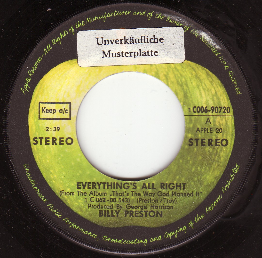 | Information: | BILLY PRESTON - APPLE 1C 006-90 361 |