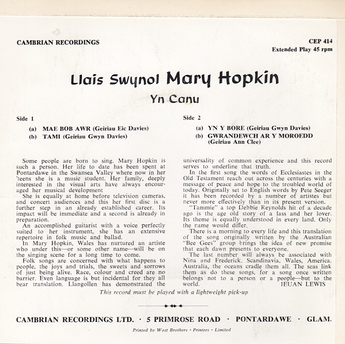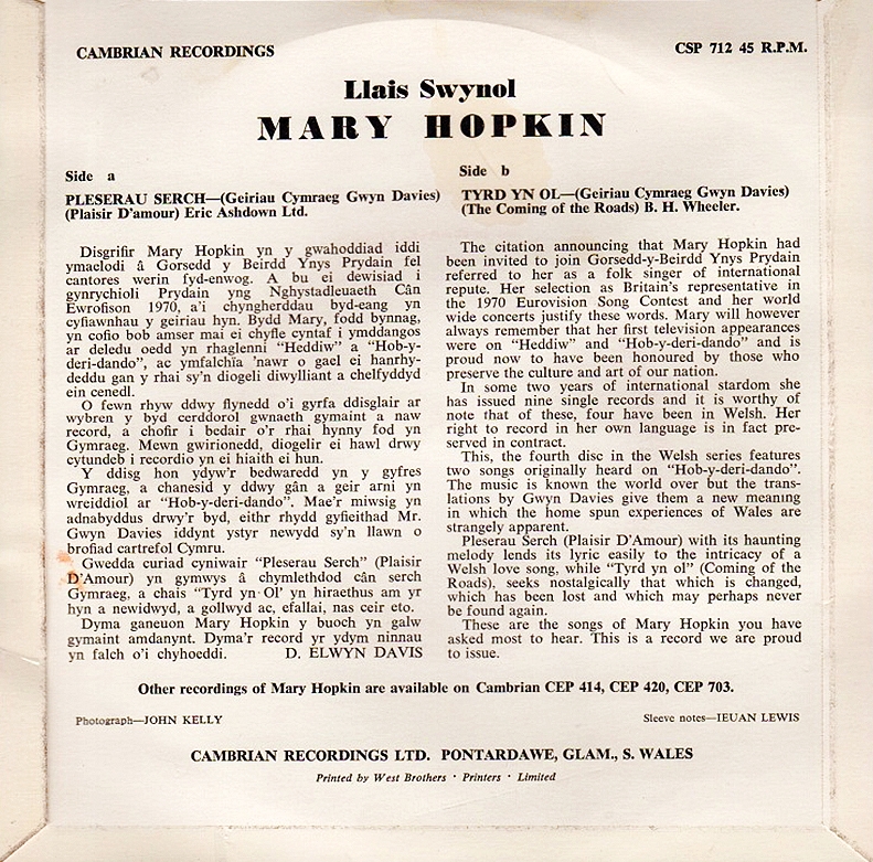 Die folgenden Beispiele sind aus der Zeit zwischen 1967 und 1970. Alle Songs sind auf walisich gesungen ...