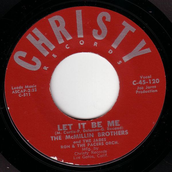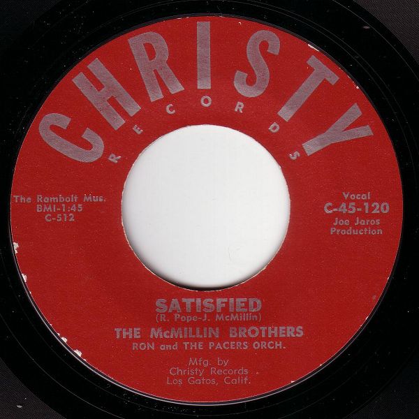 THE McMILLIN BROTHERS RON and THE PACERS ORCH., eine eigentümliche Orchesterangabe, scheint nur einmal in meinen Aufzeichnungen auf. Was die McMillin's, die wie die Everly Brothers klingen, sonst noch taten, entzieht sich leider meiner Kenntnis