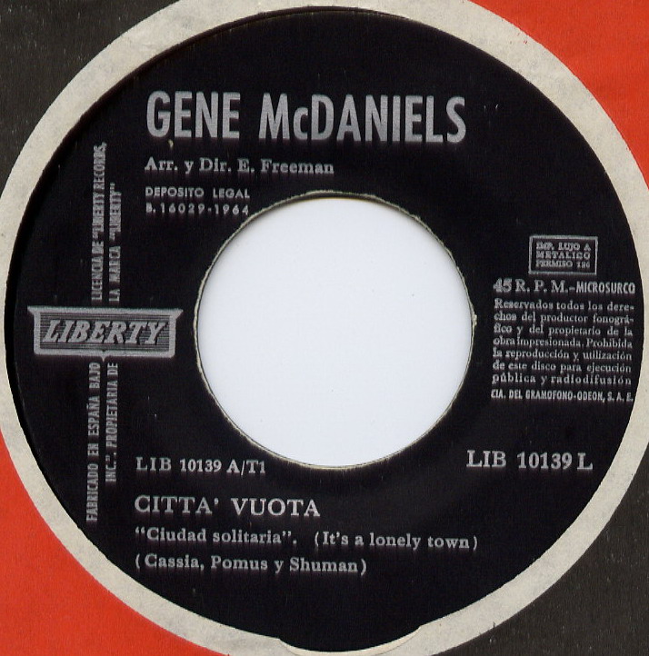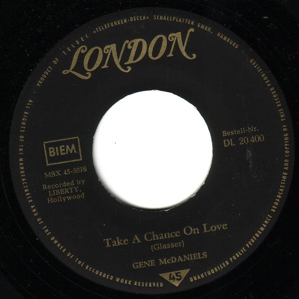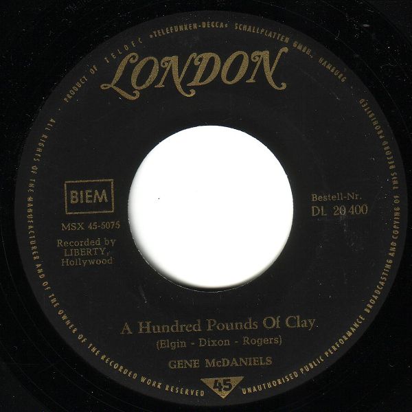 07 61....DL 20 400....GENE McDANIELS A Hundred Pounds Of Clay/Take A Chance On Love (LIBERTY 55308)
