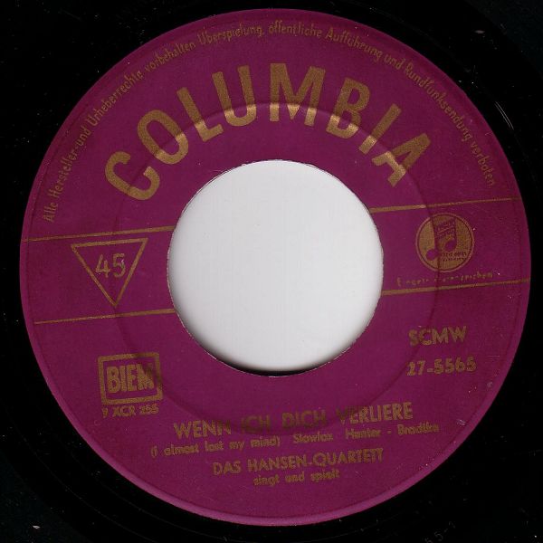 "I Almost Lost My Mind" ist zwar von Ivory Joe Hunter, war aber bei uns von Pat Boone ungemein populär. Deutsch vom Hansen-Quartett