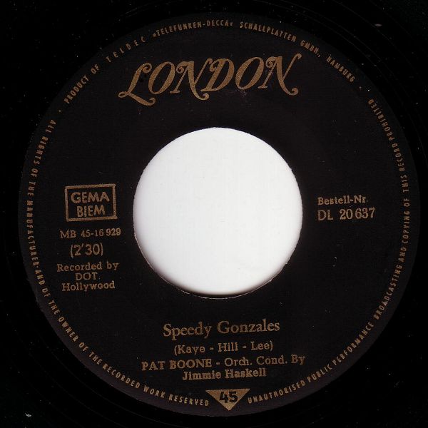 "Speedy Gonzales" stammt von David Dante, wurde aber erst durch Pat Boone weltweit bekannt. Deutsch unter anderem von Caterina Valente