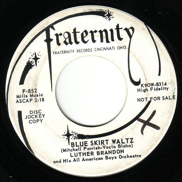 Mein Brandon heißt mit Vornamen Luther und leitete das All American Boys Orchestra, welches viele bekannte Interpreten der Firma FRATERNITY, wie beispielsweise Bobby Bare, Jesse Lee Turner u. a., begleitete. Eine Solo-Single mit dem verwirrenden Titel "Blue Skirt Waltz" hat es aber auch von ihm gegeben. Dieser "Waltz" wurde total ent-3/4t und mit einem herrlichen Rocknroll-Beat auf 4/4 getrimmt. Die andere Seite ist ein sehr rassiges Instrumental-Stück.