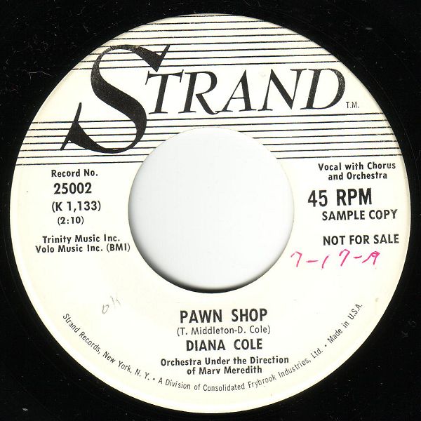 06 59....25002....DIANA COLE Orchestra Under the Direction of Marv Meredith..Picture On My Wall (K 1,132)/Pawn Shop (K 1,133)