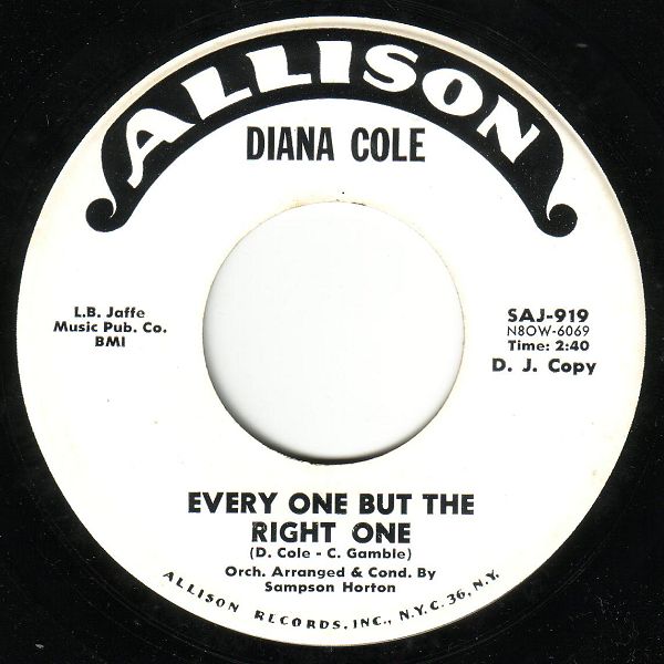06 62....SAJ-919....DIANA COLE Orch. Arranged & Cond. By Sampson Horton..Every One But The Right One (N8OW 6069)/Alone Again (N8OW 6070)