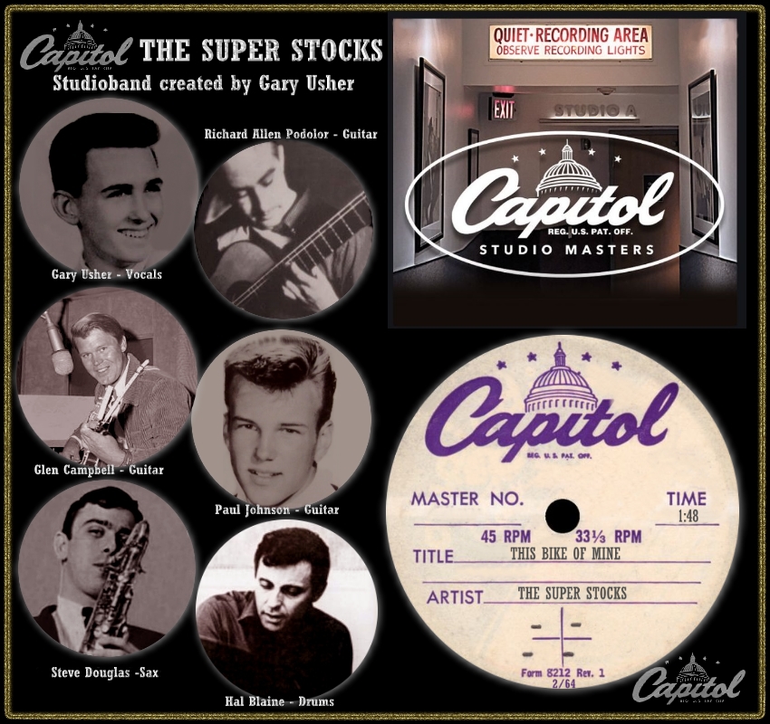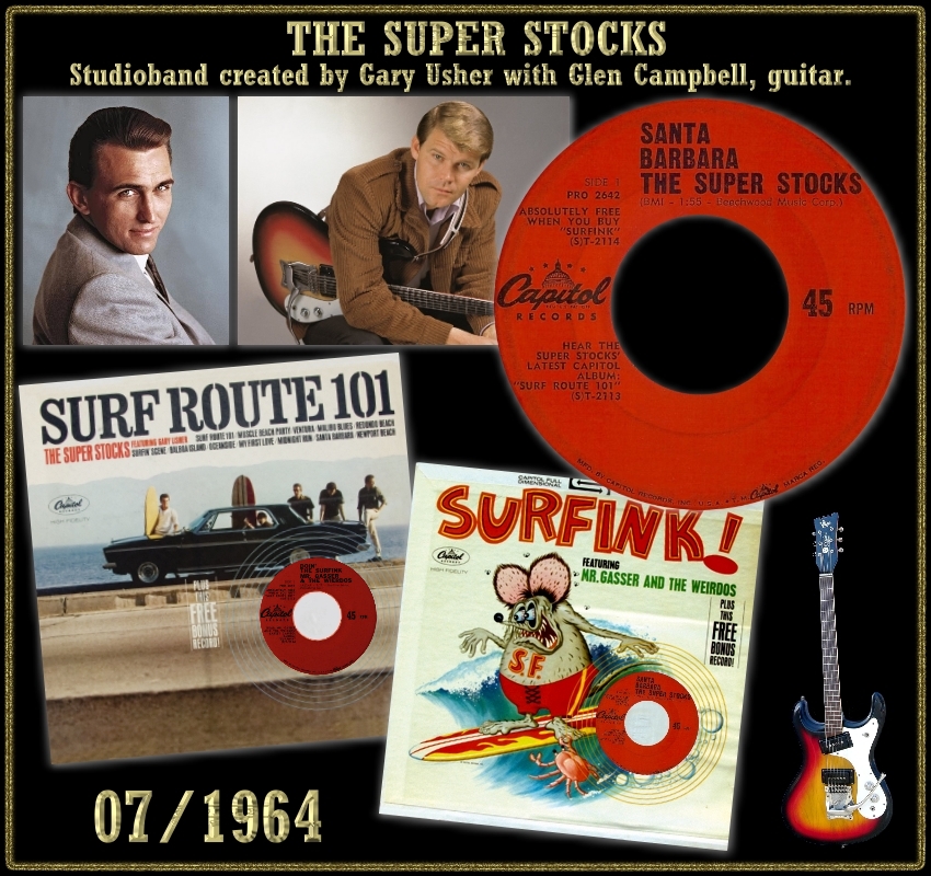 The Super Stocks were a California studio band created by Gary Usher in 1964 to capitalize on the popularity of surf music and hot rods. Usher's bands distinguished themselves from other studio creations by the quality of the session musicians - the Super Stocks made use of Wrecking Crew session musicians, including guitarist Glen Campbell. The band produced three albums on Capitol.
