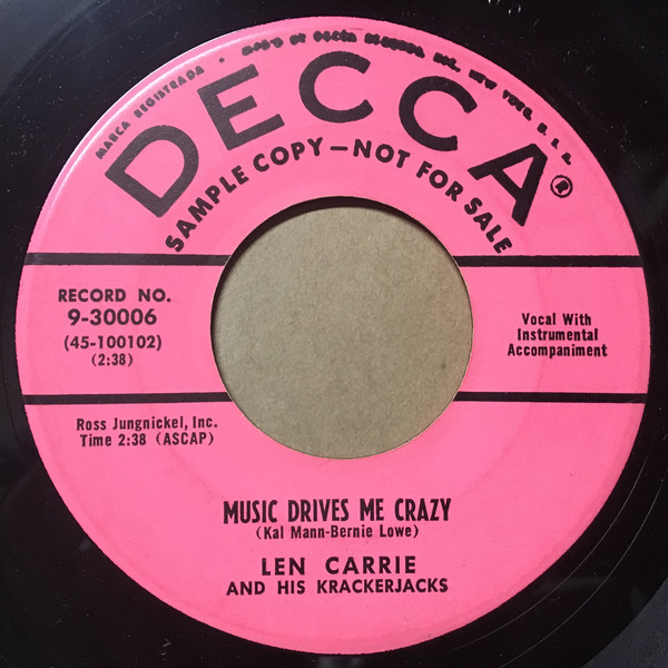 08 56....9-30006....LEN CARRIE AND HIS KRACKERJACKS..Diddilly Diddilly Babe (45 100104)/Music Drives Me Crazy (45 100102)