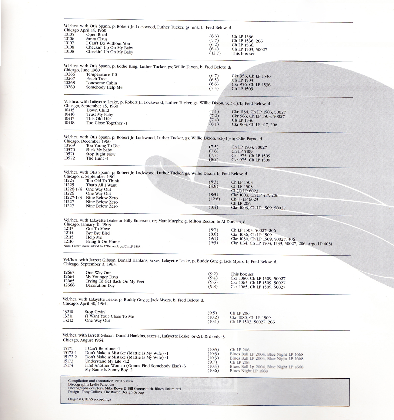 1956 folgte mit dem Titel ”Keep It To Yourself” auf Checker 847 ein weiterer Hit in der R&B-Chart (# 14). Bei Chess traf er auch wieder auf Robert Lockwood, mit dem er die nächsten fünf Jahre weitere Aufnahmen machte. Danach legte er erstmal eine Schaffenspause ein.