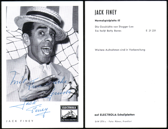 Ich habe eine Autogrammkarte von Jack Finey eingescannt, damit man sich mal ein Bild von dem Mann machen kann. Er kam aus der Karibik und nahm wohl noch weitere deutsche Singles auf.