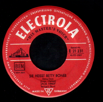 Jack Finey - Sie heisst Betty Bones / Die Geschichte von Stagger Lee / Electrola E 21 231 / ca. 1959