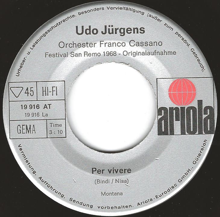 Udo Jürgens mit "Per Vivere" (Ariola 19916 AT)