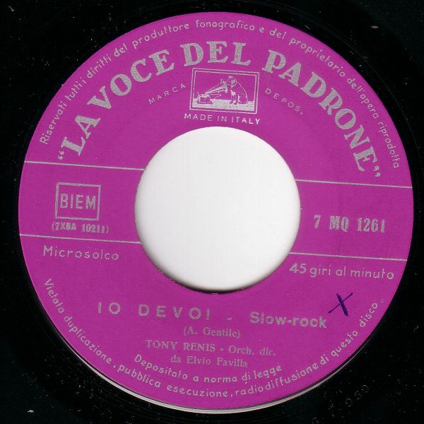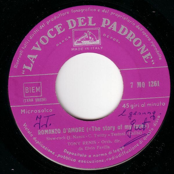 07 59....7 MQ 1261....TONY RENIS - Orch. dir. da Elvio Favilla..Romanzo d'amore («The story of my lov») (7XBA 10226)/Io devoi (7XBA 10211)