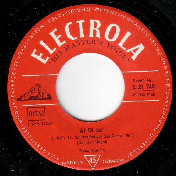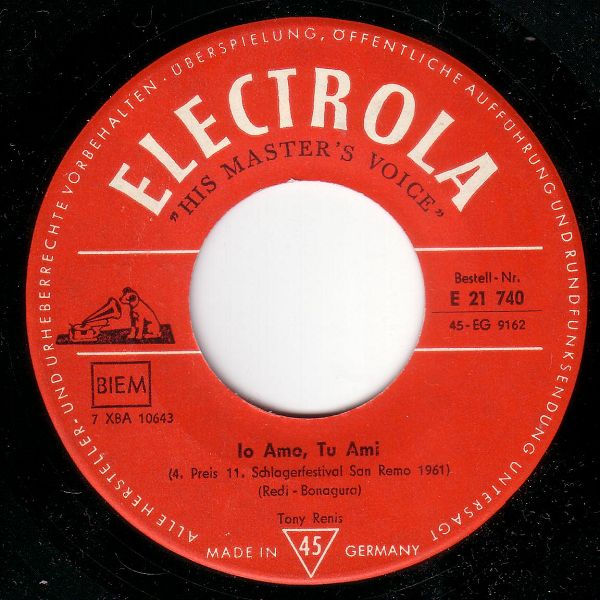 03 61....E 21 740....Tony Renis..Io Amo, Tu Ami (4. Preis 11. Schlagerfestival San Remo 1961)/Bruno Martino..Al Di La' (1. Preis 11. Schlagerfestival San Remo 1961) (I: LA VOCE DEL PADRONE EP 203/202)