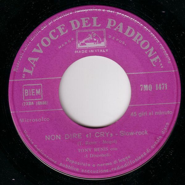 09 60....7 MQ 1471....TONY RENIS con <I Discoboli>..Non dire <I Cry> (7XBA 10536)/TONY RENIS con Orch. dir. da E. Favilla..Tenerezza (7XBA 10436 II)