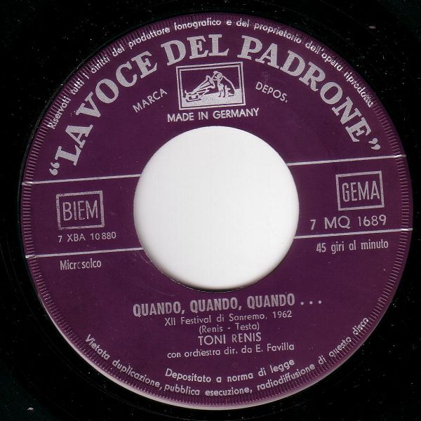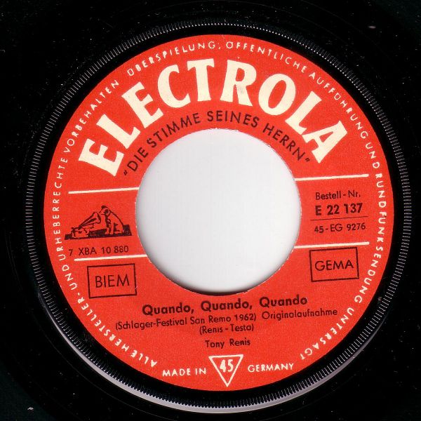 04 62....E 22 137....Tony Renis..Quando, Quando, Quando (Schlager-Festival San Remo 1962) Originalaufnahme/