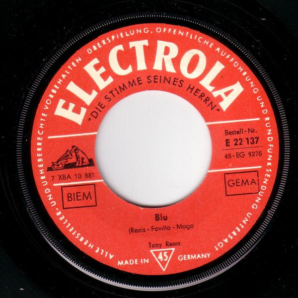 ?? 63....E 22 338....Tony Renis mit Orchester Favilla..Tango bitteschön (Tango per favore)/Blau (Blu) (I: LA VOCE DEL PADRONE)