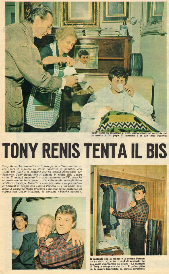 Der italienische Sänger, Komponist und Produzent Tony Renis wurde am 13. Mai 1938 in Mailand als Elio Cesari geboren. 1958 unterschrieb er bei der Plattenfirma COMBO und wechselte dann 1959 zu LA VOCE DEL PADRONE.