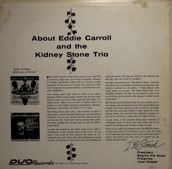 11 60….1145….EDDIE CARROLL and the THE KIDNEY STONE TRIO..One Hundred Years From Today (KB 2058 A)/Available For President (KB 2058 B)