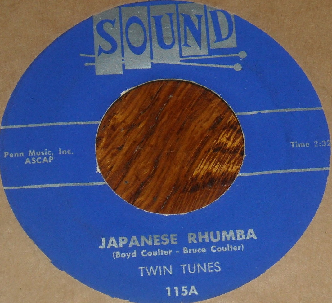 The Twin Tunes Quintet bestand aus Boyd Coulter, Bassgitarre und vokal, und seinem Zwillingsbruder Bruce Coulter, Klavier, was zu den Namen Twin Tunes führte. Dazu kamen noch Tony Carle, Trompete, Jimmy Conti, Saxophon, und D'Roxy Weems, Schlagzeug. Vor diesem Quintett gab es bereits auf CORAL und SOUND The Twin Tunes, die möglicherweise nur aus den Zwillingsbrüdern als Gesangs-Duo bestanden. Der Zusammenhang der SOUND-Singles mit dem Quintett ist jedenfalls gegeben, da Text und Musik des Titels "Japanese Rhumba" von den Zwillingsbrüdern stammen und auch am 11. April 1955 angemeldet wurden. Auf einer kurze Zeit später veröffentlchten Single ist aber Jerry Miller als Autor vermerkt und der hat tatsächlich am 21. April 1955, also ein paar Tage später, auch diesen Titel nochmals mit Text und Musik angemeldet.*) Wieder so eine "Linke" in der Musik-Branche ?!?!?!