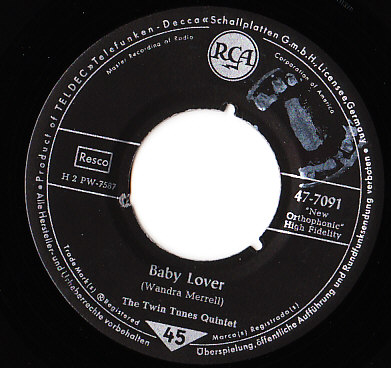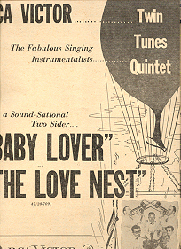 12 57....47-7091....THE TWIN TUNES QUINTET..Baby Lover (H2PW 7587)/The Love Nest (H2PW 7588)