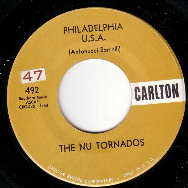 Im Forum hatten wir bereits einige TORNADOS. Hier nun eine Fünf-Mann-Gruppe aus Philadelphia, welche am 22.12.1958 einen Platz 26-Notierung mit der Single „Philadelphia U.S.A. / Magic Record“ in den Billboard-Charts hatte.
