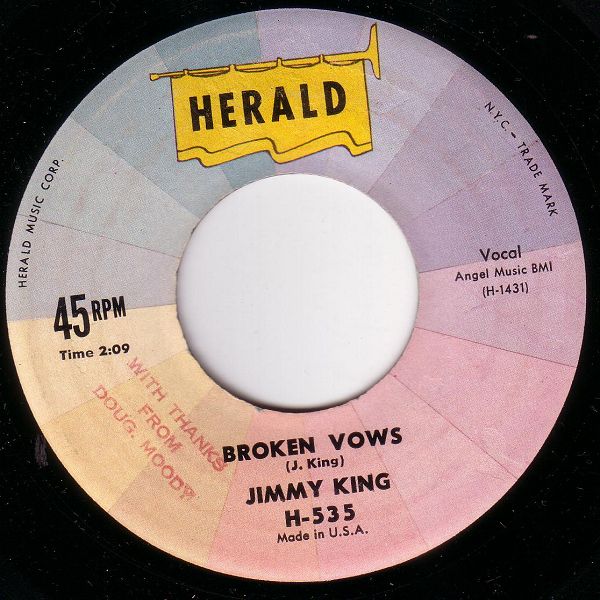 "Knockin' On Your Door" / "Broken Vows" (Herald H-535X, 1958)