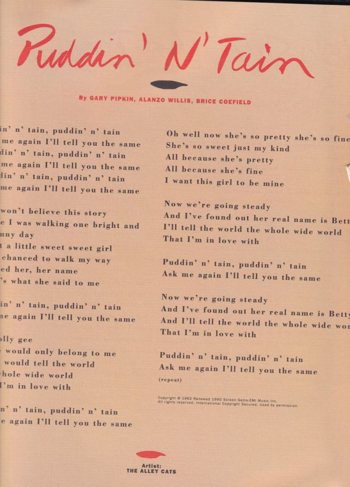 11 62....108....THE ALLEY CATS..Puddin N' Tain (Ask Me Again, I'll Tell You The Same) (P AAL 1)/Feel So Good (P AAL 2) (Delta-Nr.: 45783/-x)