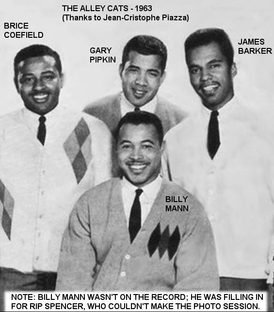 Die Mitglieder der Alley Cats die anfangs 1963 sieben Wochen in den Pop-Charts waren und Platz 43 erreichten, waren Chester Pipkin, Tenor und Gitarrist, Sheridan Spencer, zweiter Tenor, Brice Coefield, Bariton, und James Barker, Bass. Im Februar 1963 erklommen sie in den R&B-Charts sogar den 21. Platz, blieben dafür aber nur zwei Wochen in der Wertung.
