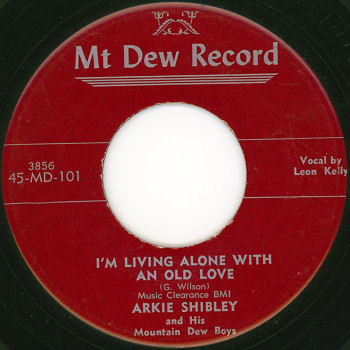 12 50....45-MD-101....ARKIE SHIBLEY and His Mountain Dew Boys Vocal By Leon Kelly..I'm Living Alone With An Old Love (3856)/ARKIE SHIBLEY and His Mountain Dew Boys Vocal By Arkie Shibley..Hot Rod Race (3857) (MT DEW 101; danach 5021)