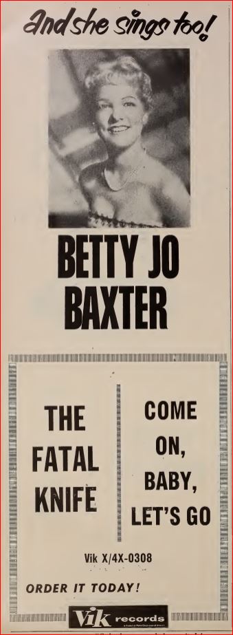 11 57....4X-0308....BETTY JO BAXTER..The Fatal Knife (H4PW 6239)/Come On Baby, Let's Go (H4PW 6240)