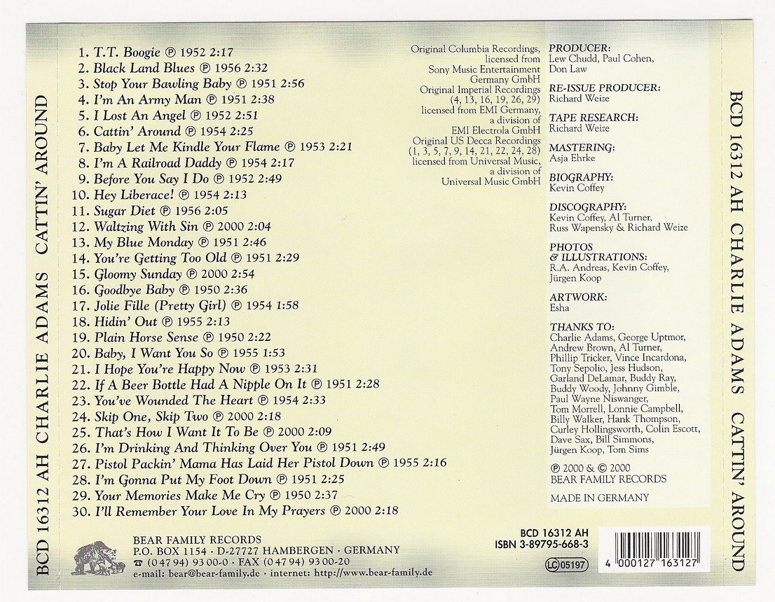 Charlie Adams wurde 1920 in Waco/Texas geboren und startete in den 1930 er-Jahren seine Karriere als Musiker. Nachdem Adams als Sanitäter im Zweiten Weltkrieg gedient hatte, kehrte er 1946 nach Waco zurück, wo Hank Thompson gerade seine ersten Schritte im Musikgeschäft wagte. Adams trat Thompsons Band bei und machte 1947 mit Thompson erste Aufnahmen für das Bluebonnet-Label. Danach schloss er sich den Lone Star Playboys als Bassist an.