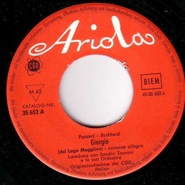 *) hier dürfte es sich um eine Fehleintragung bei Wikipedia (Loredano Taccani) handeln. Diese Single wurde nicht 1961 sondern erst 1963 mit der Nummer Ld A 7329 veröffentlicht. Außerdem ist die Nummer 7039 aus 1961 bereits mit Edoardo Lucchina belegt