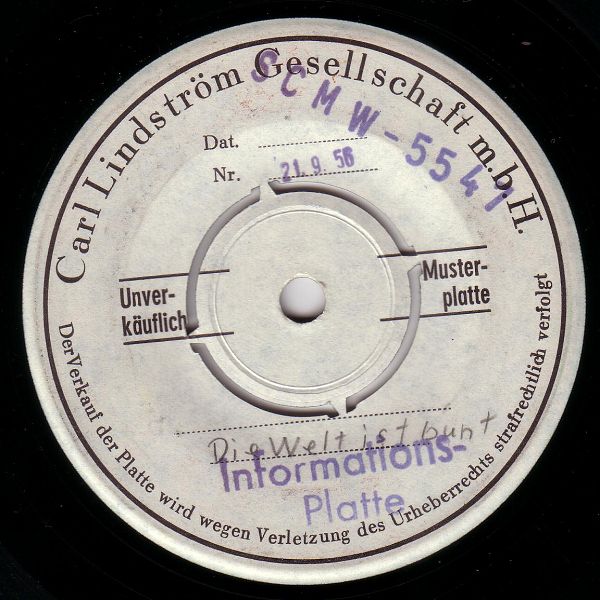 Hier habe ich noch ein Pendant von EMI-Columbia. The Dave Clark Five, C-23204, vom 13.Mai 1966, You got to love before you leave / She would love me. Weisslabel auch handbeschriftet und bestempelt. Mit Hinweis Unverkäufliche Musterplatte.