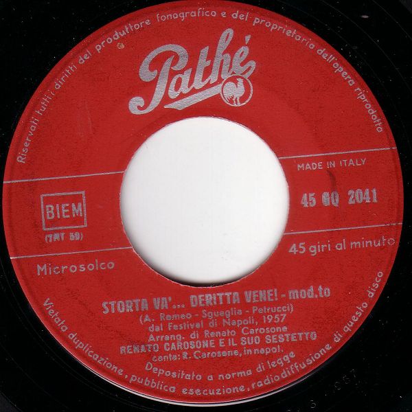 06 57....45 GQ 2041....RENATO CAROSONE E IL SUO SESTETTO canta: Gegè Di Giacomo in napoletano..L'hai voluto te! (alla faccia tua) (7MT 61)/RENATO CAROSONE E IL SUO SESTETTO canta: R. Carosone in napol. ..Storta va' ... deritta vene! - mod.to (7MT 59)