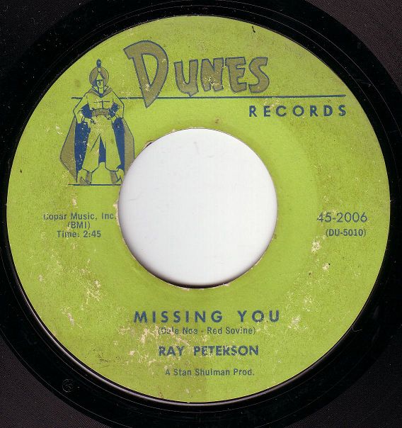 12 61....453 110 A....RAY PETERSON Missing You/ B You Thrill Me (DUNES 2006)