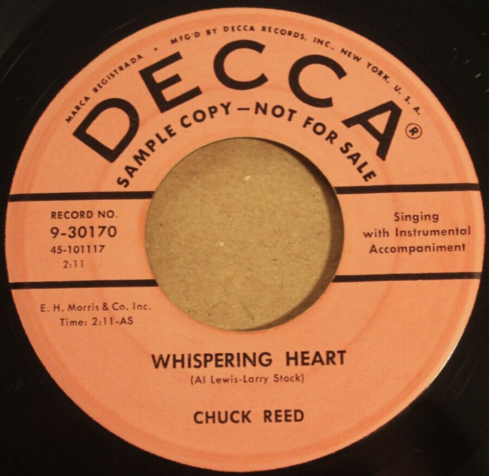 12 56....9-30170....CHUCK REED..Whispering Heart/Another Love Has Ended