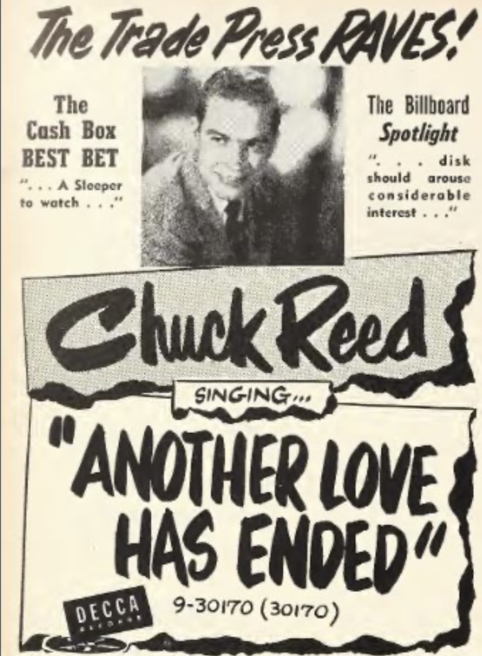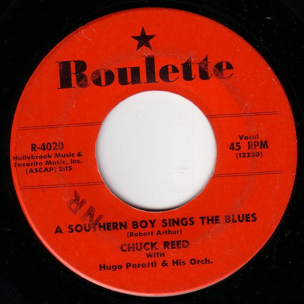 09 57....R-4020....CHUCK REED WITH Hugo Peretti & His Orch. ..A Southern Boy Sings The Blues (12220)/Sugar Corsage (12221)