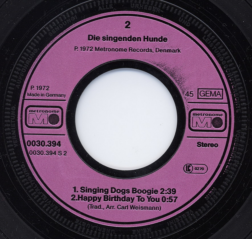 | Information: | SINGING DOG - MEDLEY (PAT-A-CAKE, THREE BLIND MICE, JINGLE BELLS |