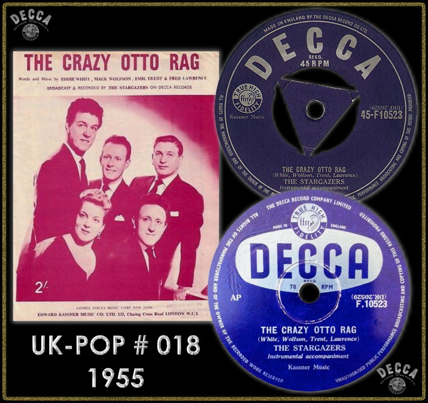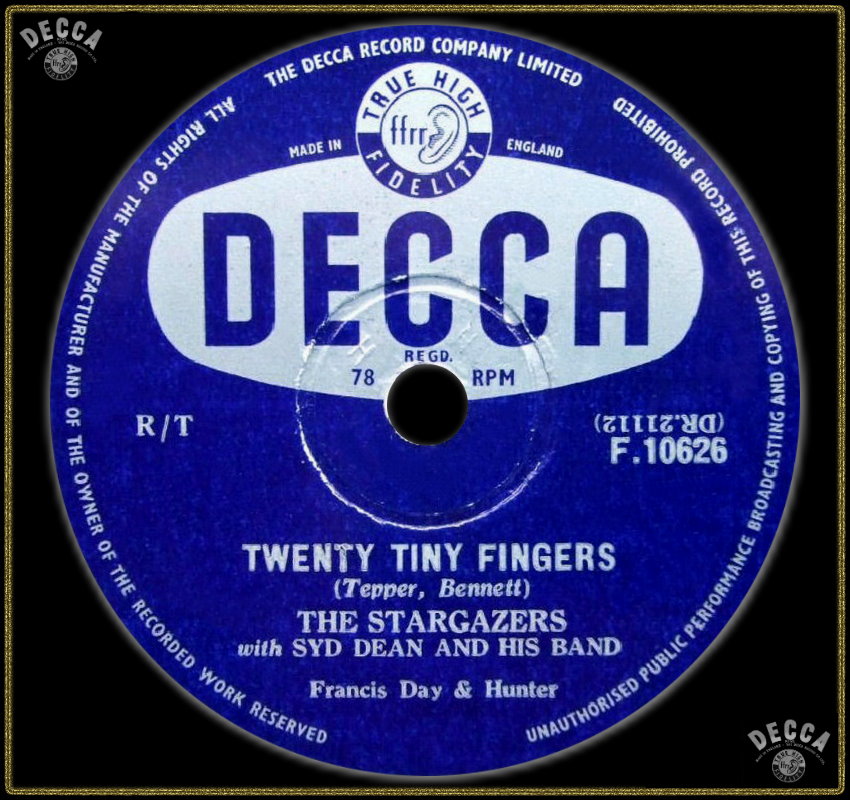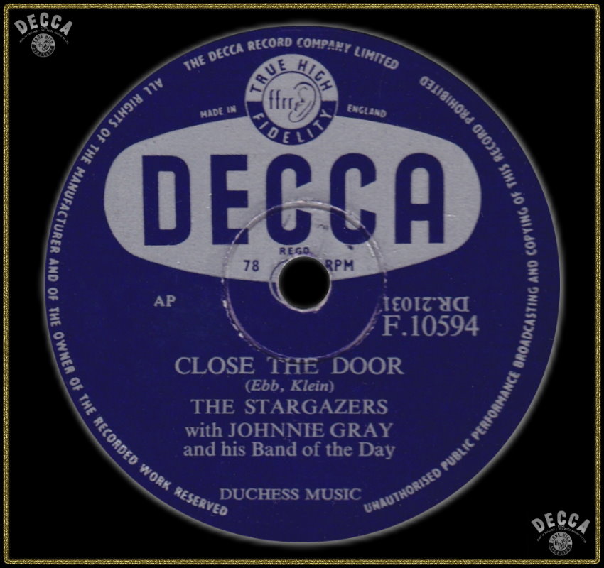 The Stargazers begannen als Quintett und sangen im BBC-Programm. Die Originalbesetzung bestand aus Cliff Adams, Dick James, der Australierin Marie Benson, Fred Datchler und Ronnie Milne, 1953 ersetzt durch Dave Carey. Seit 1949 agierten sie im Schallplattengeschäft, zunächst als Background-Gesang und erreichten mit einer Cover-Version des Art & Dotty Todd-Titels “Broken Wings“ am 11. April 1953 als erste britische Gesangsgruppe den Sprung an die Spitze der Charts. Weitere Hits folgten dann 1954 mit “I See The Moon“ (# 1), “The Happy Wanderer“ (# 12) und am Jahresende zusammen mit Dickie Valentine der Titel “Finger Of Suspicion“ (# 1). Die Leser des New Musical Express wählten die Stargazers fünf Jahre in Folge zur "populärsten Gesangsgruppe". Anzumerken ist weiterhin, dass die Gruppe für die Backgroundstimmen auf den ersten Petula Clark-Schallplatten sorgte.