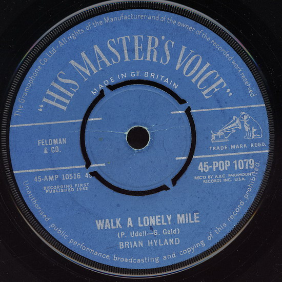 BRIAN HYLAND ab 7.4.1962 mit seinem neuen US-Hit