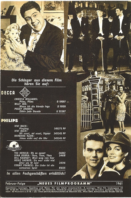 Sie wirkte in einigen Musikfilmen wie "Schlagerparade 1960, 1961" und