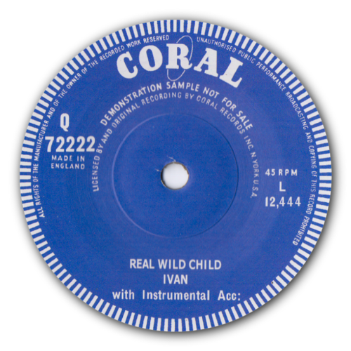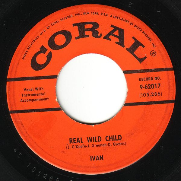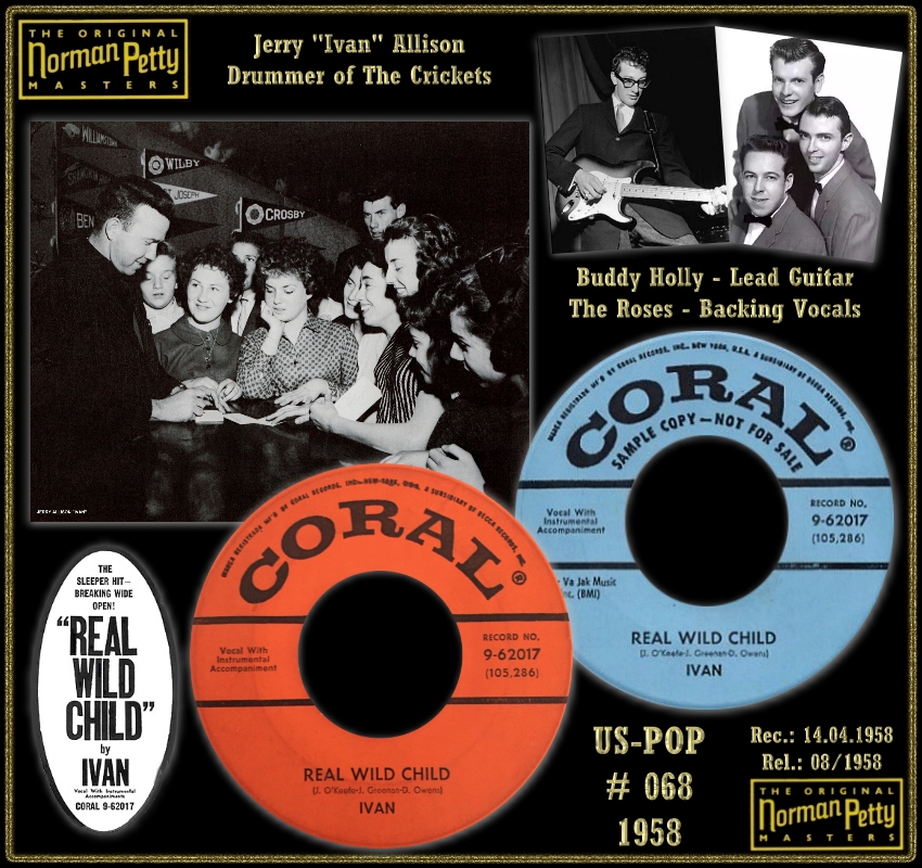 1958 machte er einen Seitensprung und nahm vier Gag-Titel auf, die dann als Single veröffentlicht wurden. Mir liegen sie nicht, aber über Geschmack kann man bekanntlich streiten. Eine Ausnahme gibt es für mich allerdings, nämlich die Cover-Version des australischen Rocknroll-Titels "Wild One" von Johnny O'Keefe, der bereits bei O'Keefe's USA-Veröffentlichung auf "Real Wild Child" geändert wurde. Diese Ivan-Version lasse ich mir gerne gefallen
