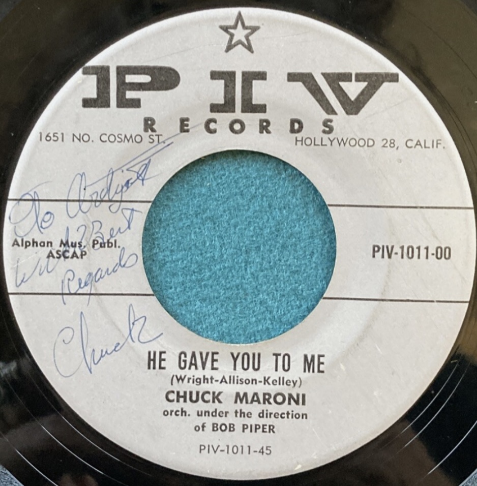 ?? 57....PIV-1011-45....CHUCK MARONI orch. under the direction of BOB PIPER..He Gave You To Me (PIV-1010-00)/A Miracle (PIV-1010-01)