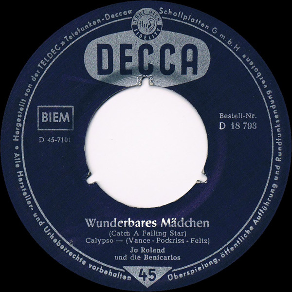 1958 Pop 1 Perry Como Catch A Falling Star RCA Victor 7128 Lee Pockriss, Paul Vance 13.01.1958 24.03.1958
