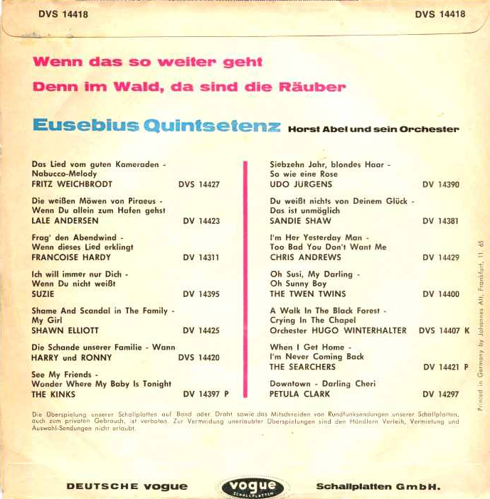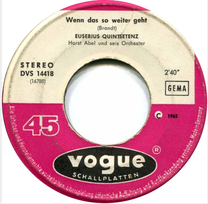 1965 Vogue 14418 ("Wenn Das So Weiter Geht"/"Denn Im Wald Da Sind Die Räuber" & HORST ABEL und sein Orchester)