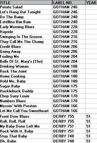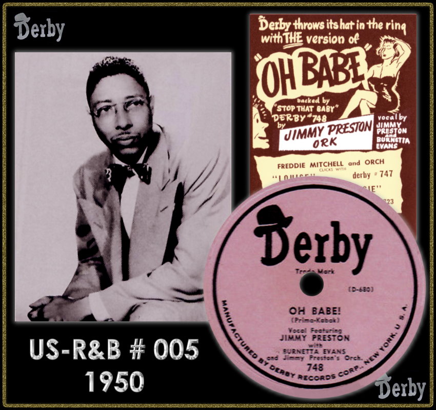 Aber noch früher hatte Preston mit “Hucklebuck Daddy“, 1949 für Gotham 175 auf # 4, auf sich aufmerksam gemacht. 1950 wechselte er zu Derby Records und landete, unterstützt von der Sängerin Burnetta Evans, mit “Oh, Babe!“ (einer Komposition von Louis Prima) # 5 auf Derby 748 seinen letzten Hit. Dieser Titel war eine Cover-Version des Originales von Louis Prima & Keely Smith.