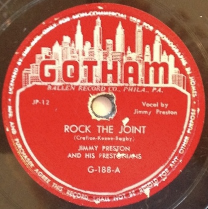 Der Sänger und Altsaxophonist Jimmy Preston (* 18. August 1913 in Philadelphia, + 1971) gilt als einer der Urväter des Rock’n’Roll, da er mit The Prestonians (Harry "Fats" Crafton-g, Danny Turner-ts) 1949 mit “Rock The Joint“ schon drei Jahre vor der Bill Haley-Version auf Gotham 188 einen Hit (# 6) verbuchen konnte. Der Titel wurde im Mai 1949 in Philadelphia eingespielt. Im Juli 1949 brachte Gotham-Records in Philadelphia die Platte heraus, die auf den dort lebenden Bill Haley mit seiner Country and Western-Band ziemlichen Eindruck gemacht haben muss, denn Haley nahm gut drei Jahre später eine Nachversion davon auf. Eine erste Cover-Version lag dann schon von Jimmy Cavallo vor.