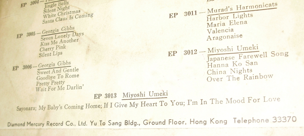 Miyoshi signed with Mercury Records in 1955 and recorded the following 45 rpm singles: