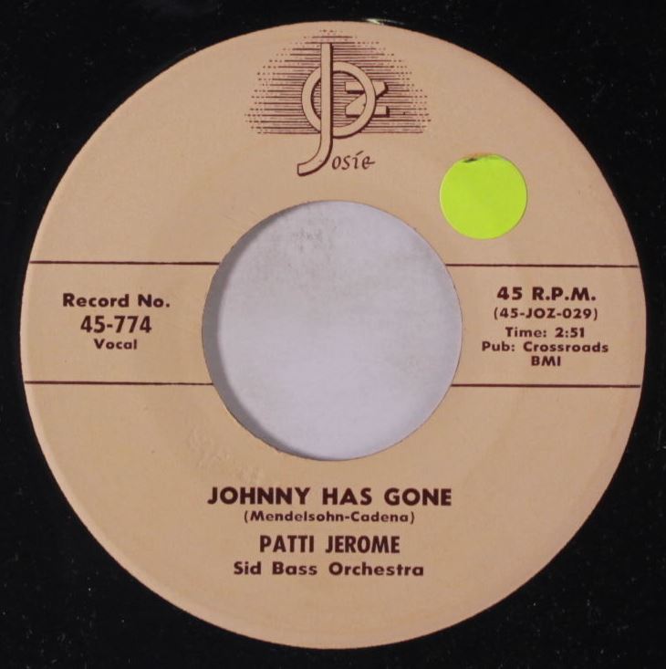 Patti released a follow-up single on Jubilee’s sister label, Josie, in early 1955. “Johnny has Gone” coupled with “After The Lights Go Down Low” featured the Sid Bass Orchesta, with Sid Bass on piano. Bass conducted and orchestrated successfully for Jubilee with the Orioles, and the idea was to capture and rub off some of that hit sound for Jerome. The record went almost unnoticed and Patti found herself out of a contract, which was for two singles.